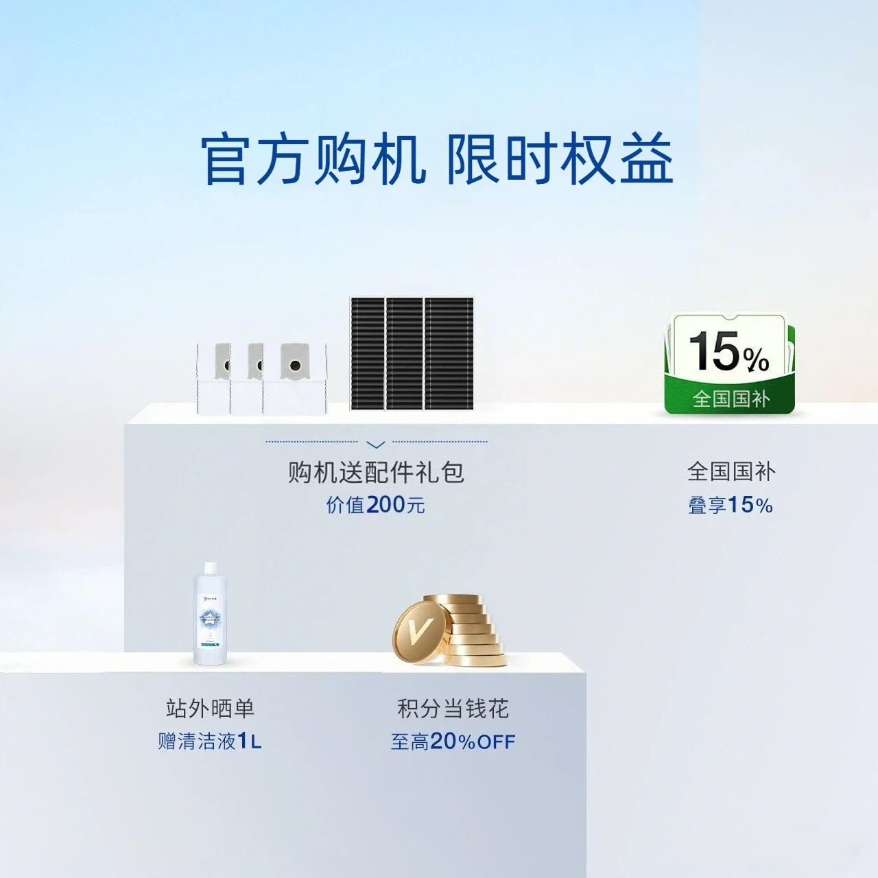 | 包装清单 | 主机*1、基站*1、电源线*1、说明书*1、快速指南*1、可替换洗地滚筒(个)*1、边刷*1、毛胶滚刷&滚刷盖板(个)*1、抗菌滤芯*1、抗菌集尘袋*1、清洁消毒剂(260ml/瓶)*1、清水箱(个)*1、污水箱(个)*1 |