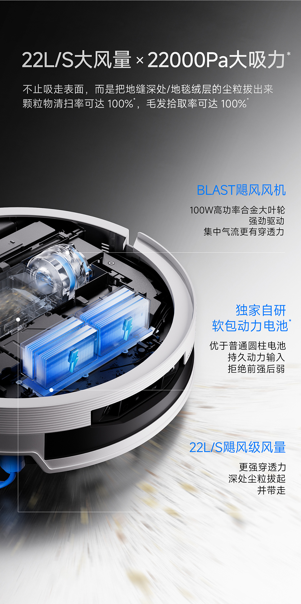 | 包装清单 | 主机*1、基站*1、电源线*1、说明书*1、快速指南*1、边刷(个)*1、滚刷(个)*1、抗菌滤芯(个)*1、抗菌尘袋(个)*1、清洁消毒液(260ml/瓶)*1、重污清洁液(260ml/瓶)*1、辅仓自动加液模块(个)*1、普通滚筒(个)*1、清水箱(个)*1、污水箱(个)*1 |