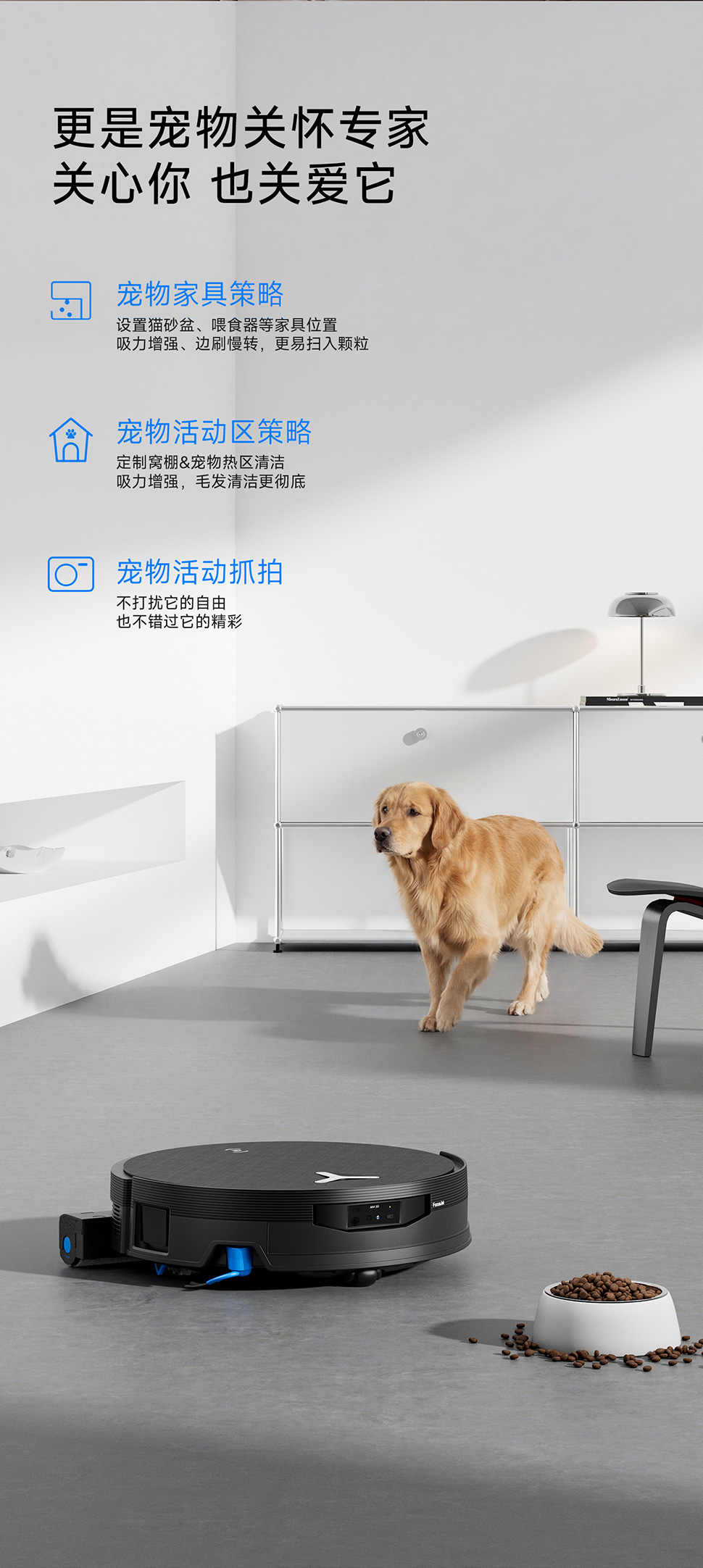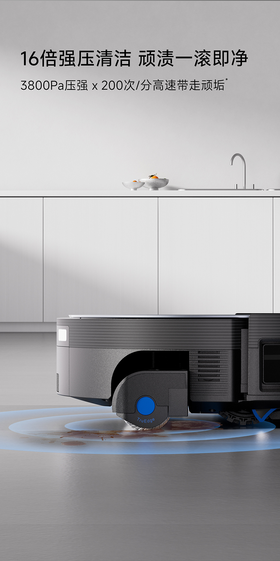 | 包装清单 | 主机*1、基站*1、电源线*1、说明书*1、快速指南*1、边刷(个)*1、滚刷(个)*1、抗菌滤芯*1、抗菌集尘袋*1、清洁消毒液(260ml/瓶)*1,普通滚筒(个)*1 |