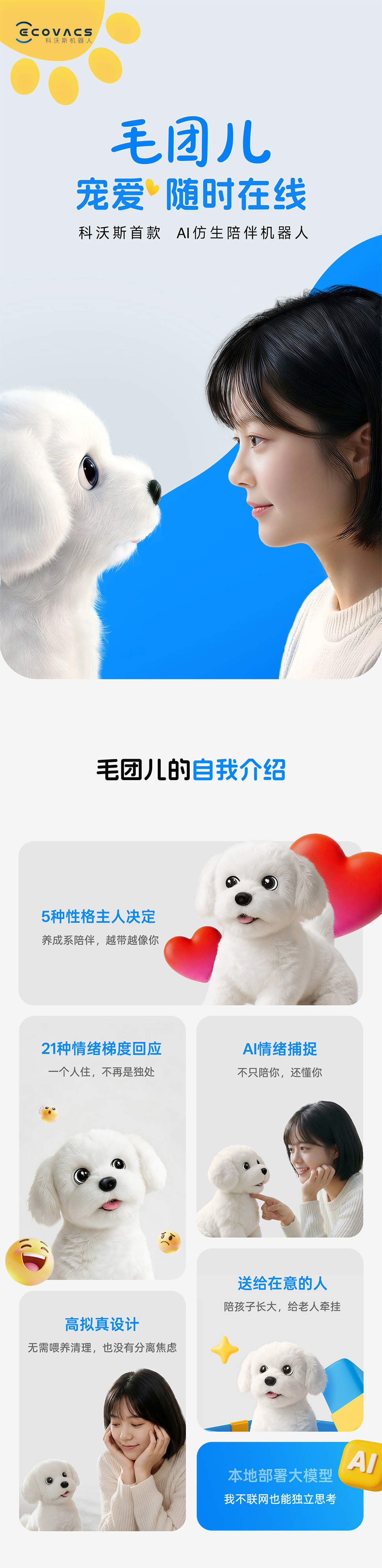 【新品首发】毛团儿AI仿生陪伴机器人宠物机器狗(白色)