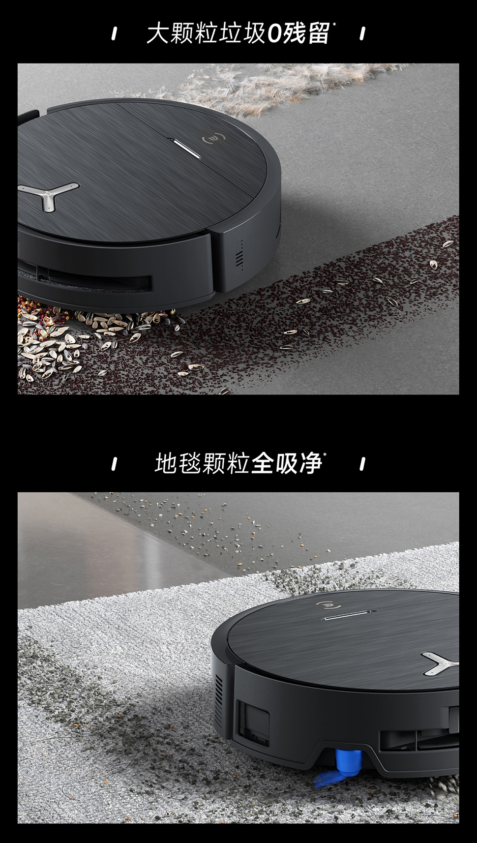 | 包装清单 | 主机*1、基站*1、电源线*1、说明书*1、快速指南*1、边刷*1、毛胶滚刷&滚刷盖板(个)*1、抗菌滤芯*1、抗菌集尘袋*1、清洁消毒剂(260ml/瓶)*1、普通滚筒(灰色)*1,清水箱(个)*1、污水箱(个)*1 |