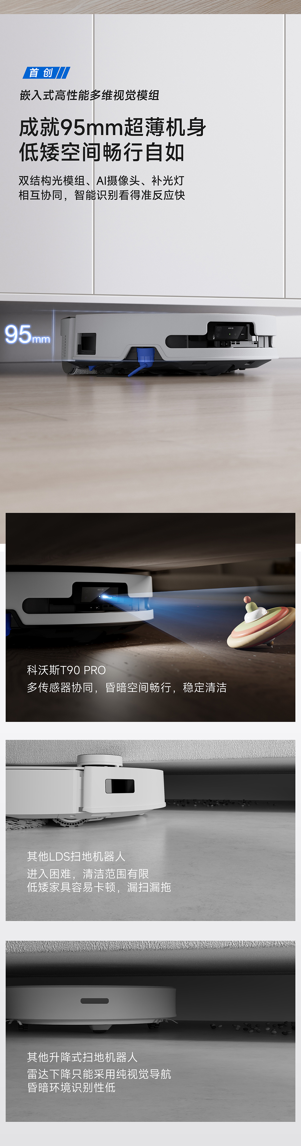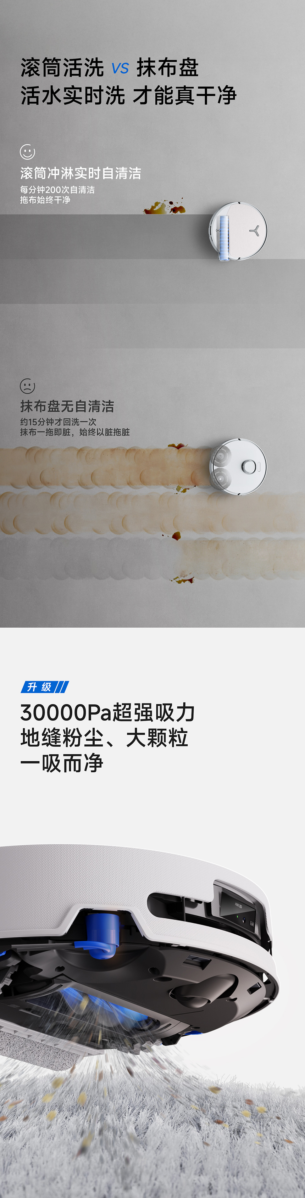 | 包装清单 | 主机*1、基站*1、电源线*1、说明书*1、快速指南*1、边刷*1、毛胶滚刷&滚刷盖板(个)*1、抗菌滤芯*1、抗菌集尘袋*1、清洁消毒剂(260ml/瓶)*1、普通超纤滚筒*1,清水箱(个)*1、污水箱(个)*1 |