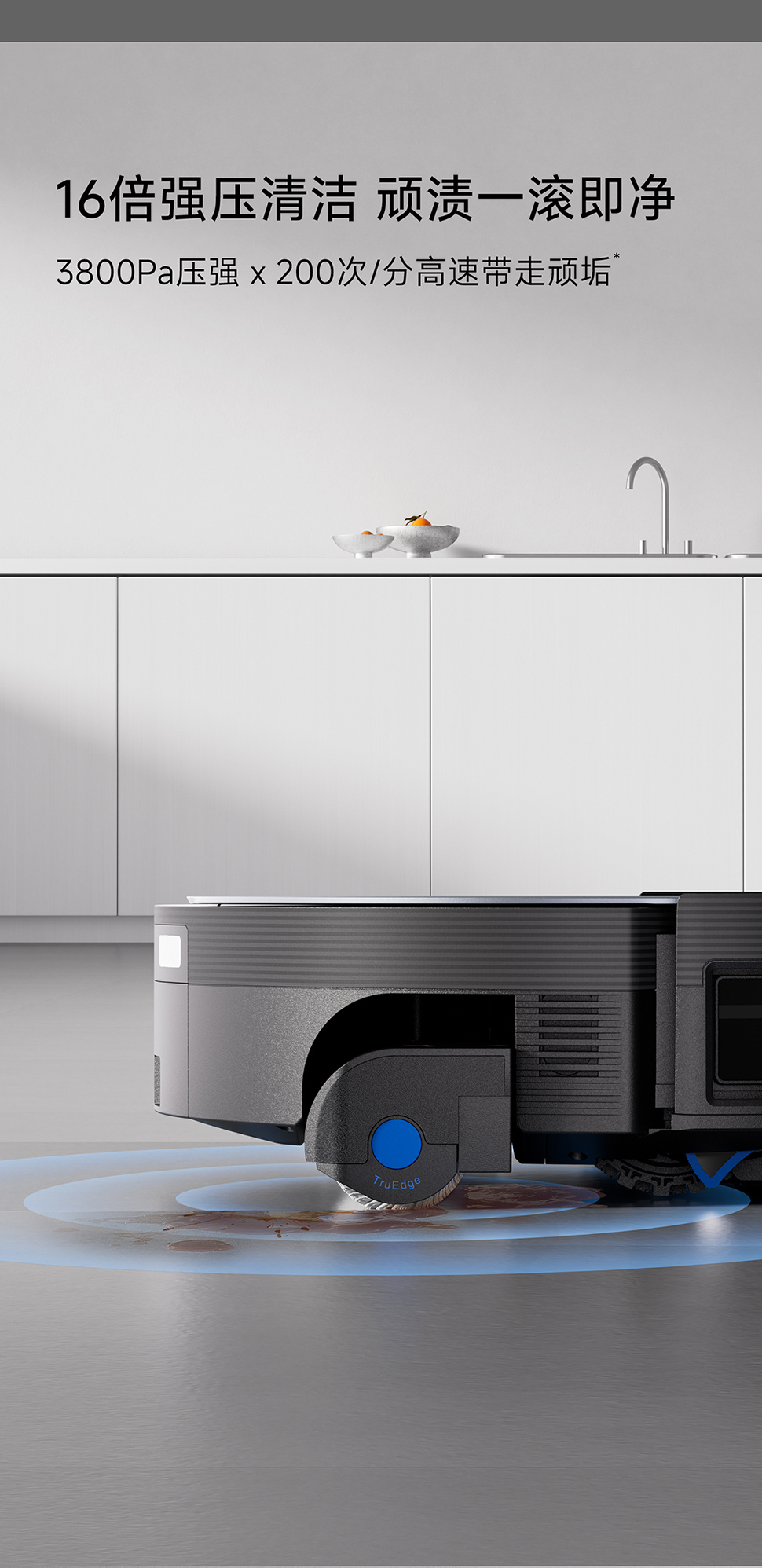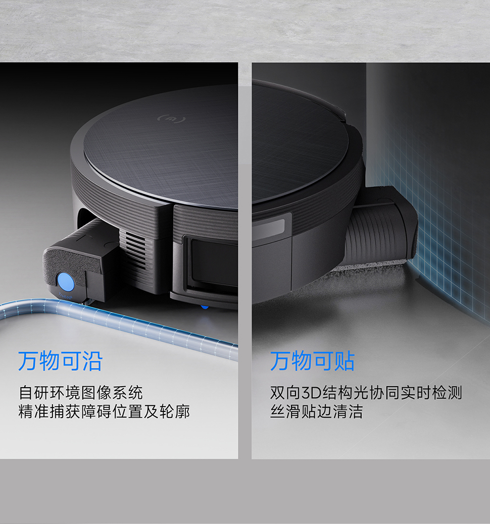 | 包装清单 | 主机*1、基站*1、电源线*1、说明书*1、快速指南*1、边刷(个)*1、滚刷(个)*1、抗菌滤芯*1、抗菌集尘袋*1、清洁消毒液(260ml/瓶)*1,普通滚筒(个)*1 |